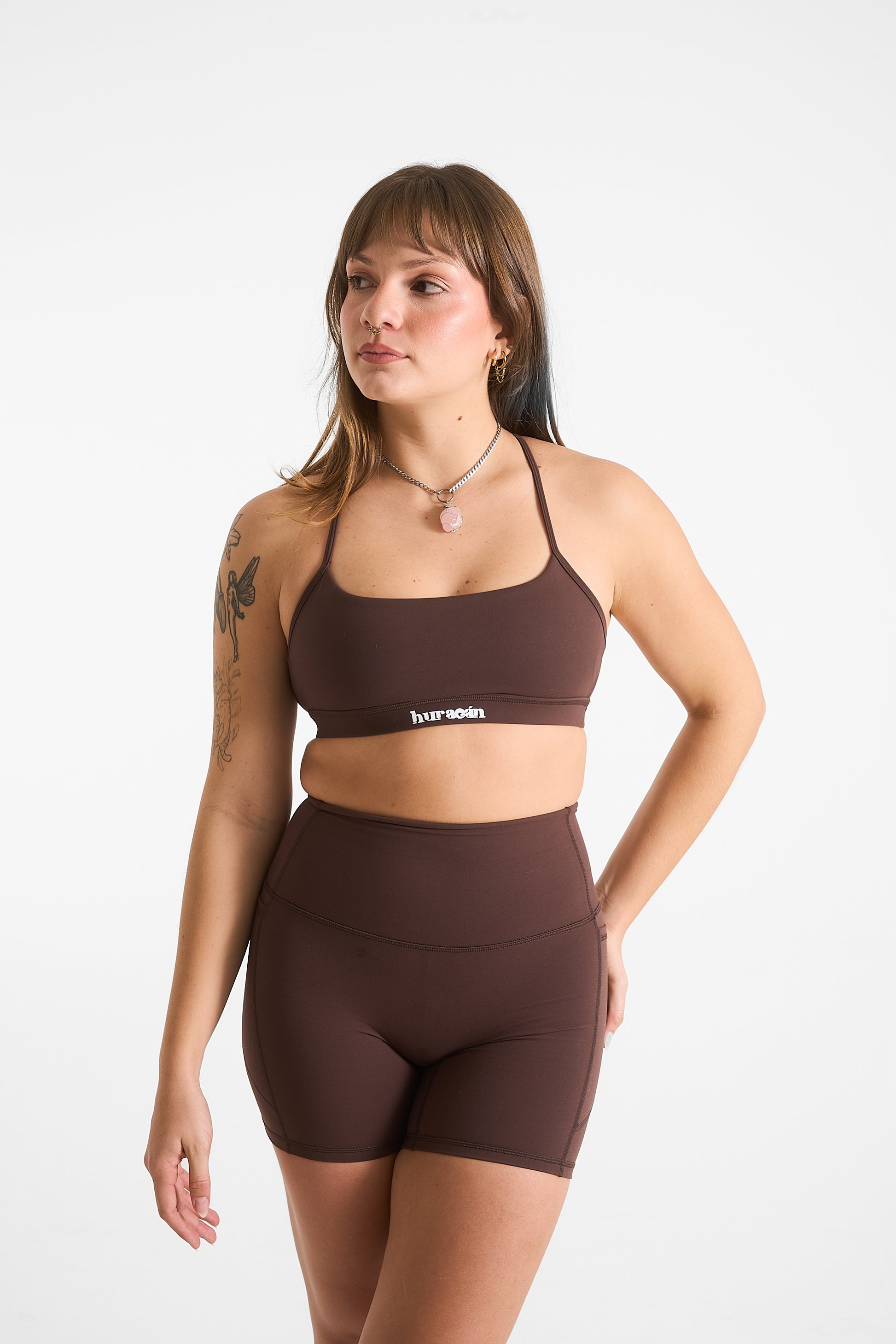 Un diseño minimalista y elegante, perfecto para quienes buscan libertad total de movimiento sin sacrificar soporte. Sus tirantes delgados se cruzan en la espalda creando un look moderno y delicado, mientras mantienen un ajuste estable y cómodo durante entrenamientos de baja a media intensidad.